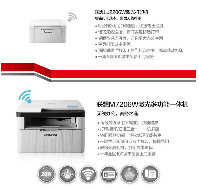 聯想M7206WM7206黑白激光無線WiFi一體機打印機辦公家用A4黑白打字復印件