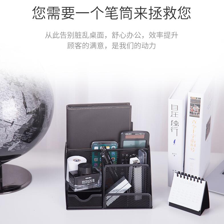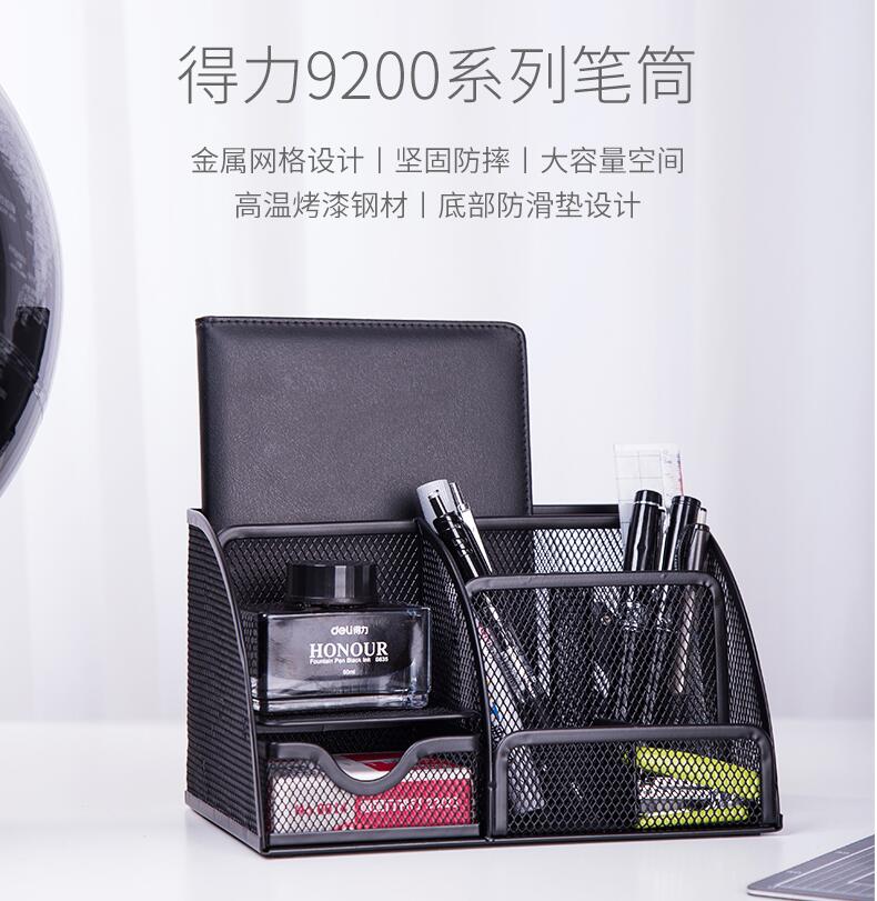 得力9200金屬網格筆筒組合辦公用品桌面收納筆插文具整理盒多功能筆座大容量小清新時尚可愛創意收納網紋網狀