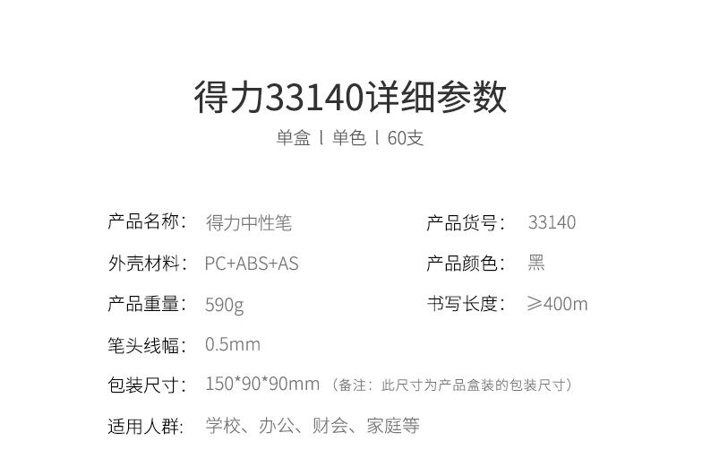 其它財會用品 得力文具33140 中性筆學生考試量販式黑筆水筆碳素筆0.5mm 60支裝
